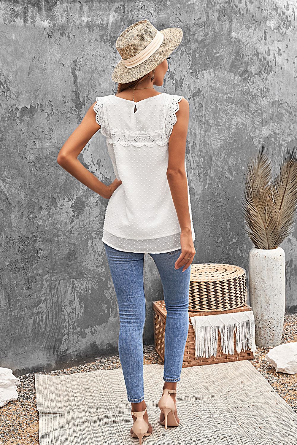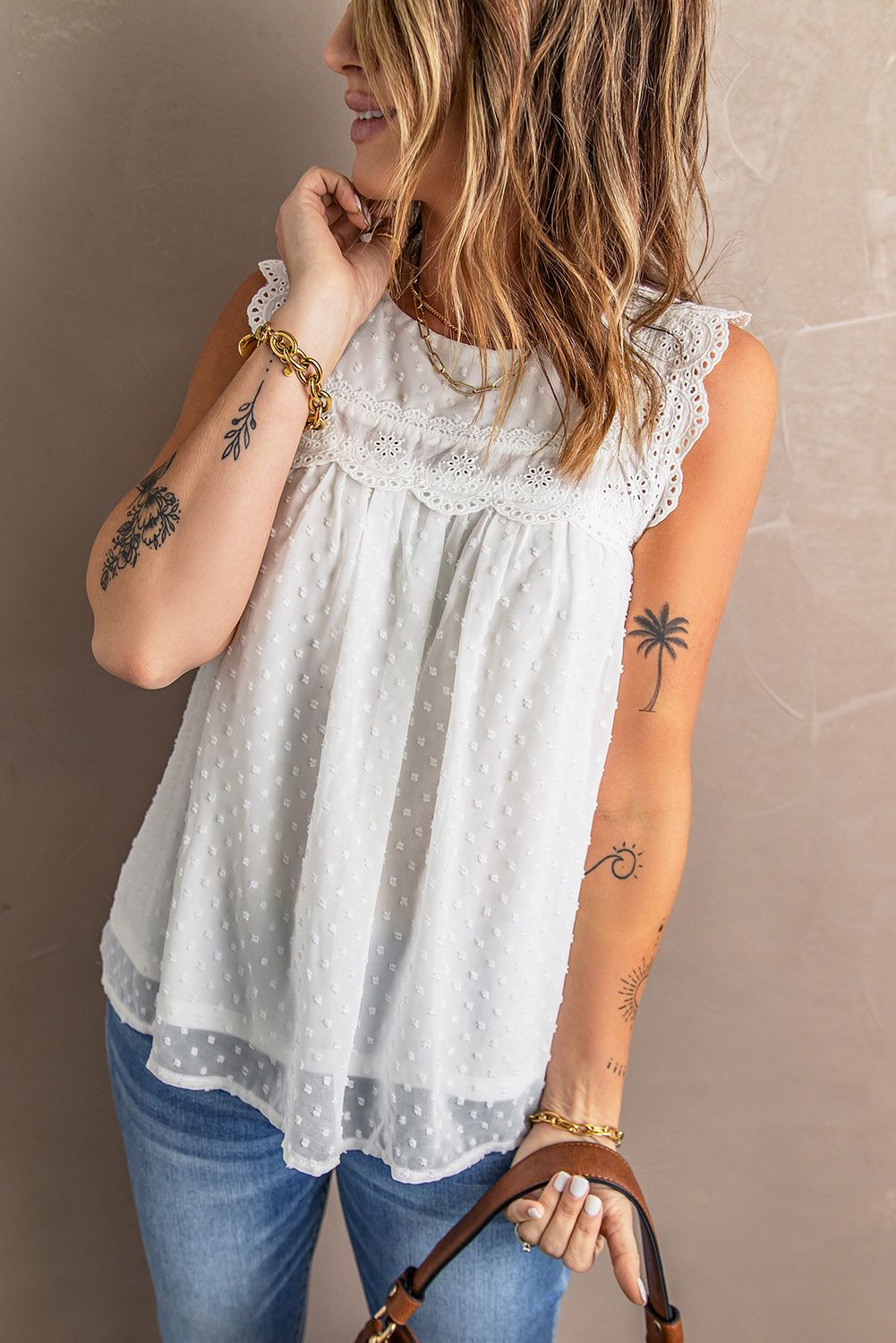 Vest top for women combines a chic polka dot design and crochet lace detail to create the modern and fascinating look