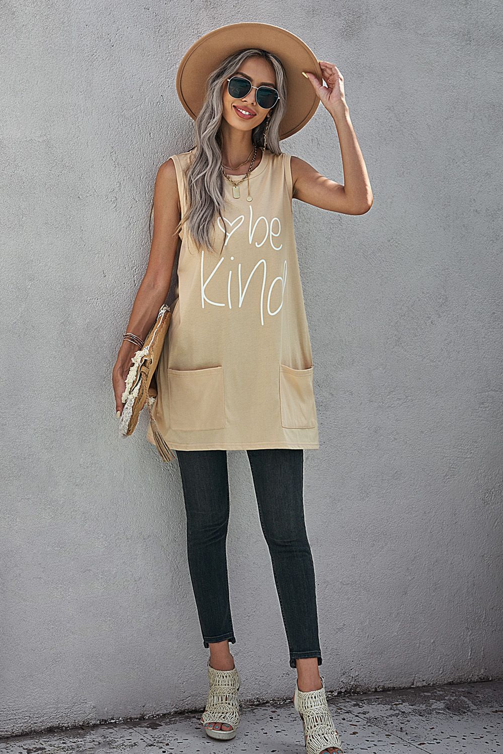 be kind Letters Graphic Tank with Pockets