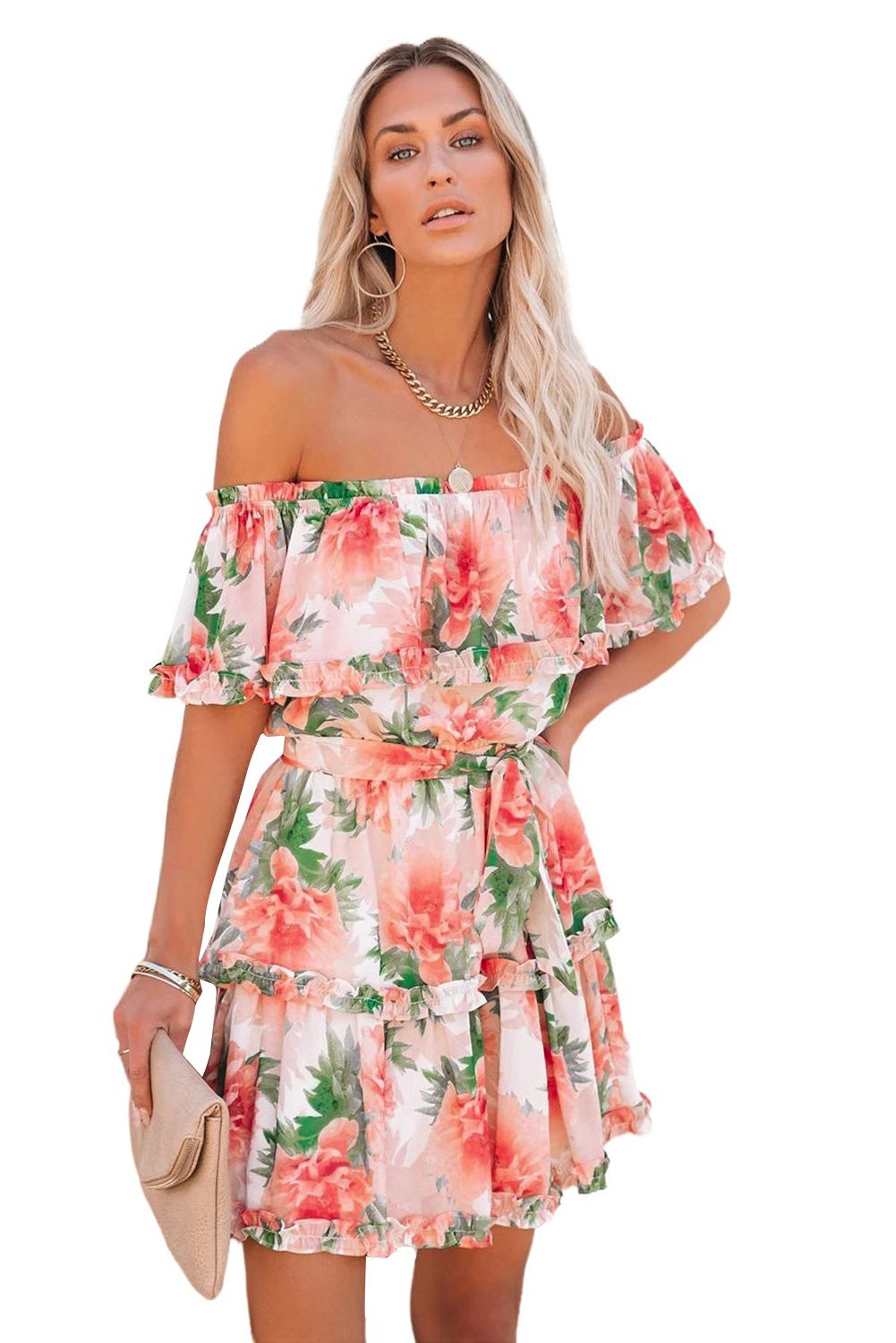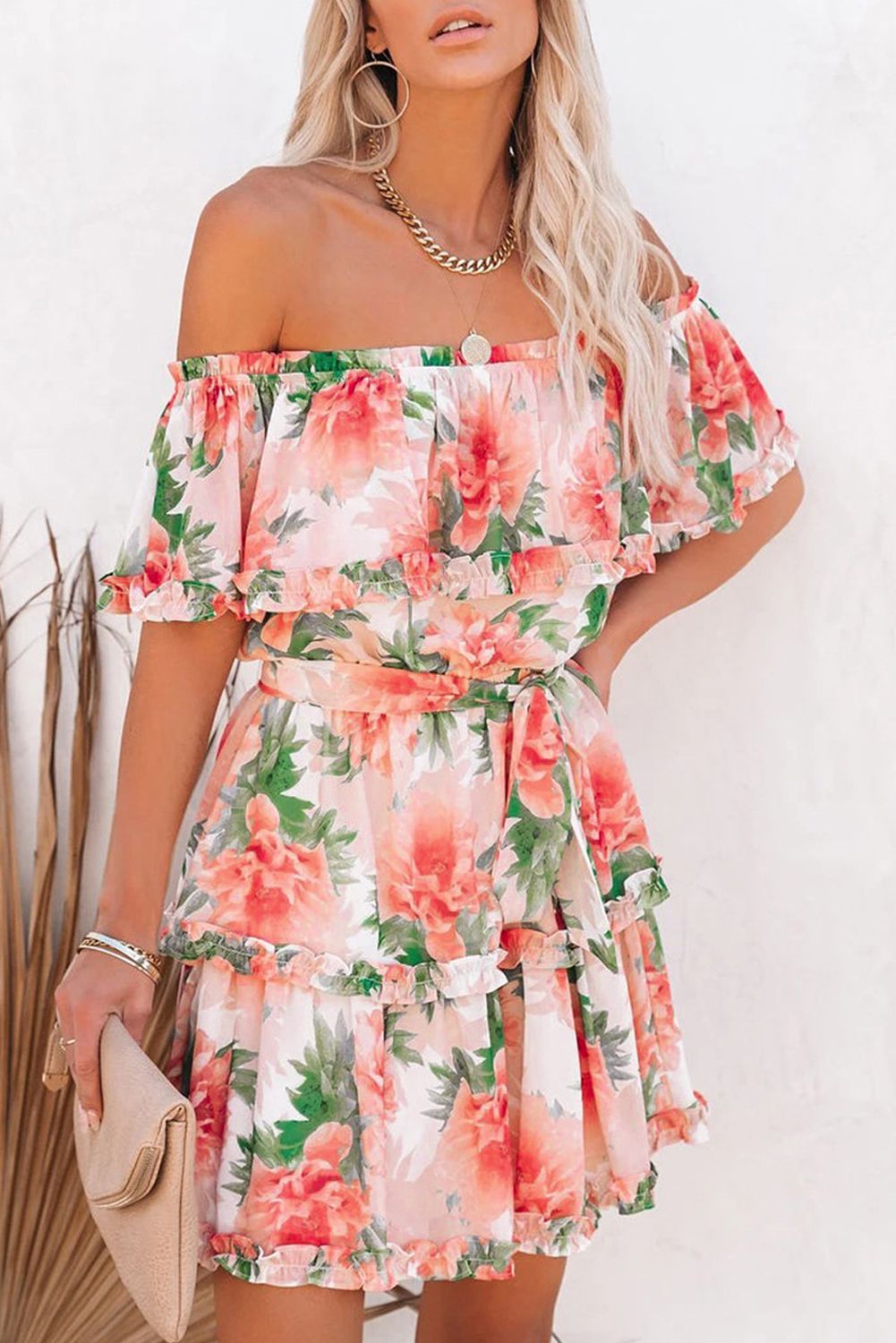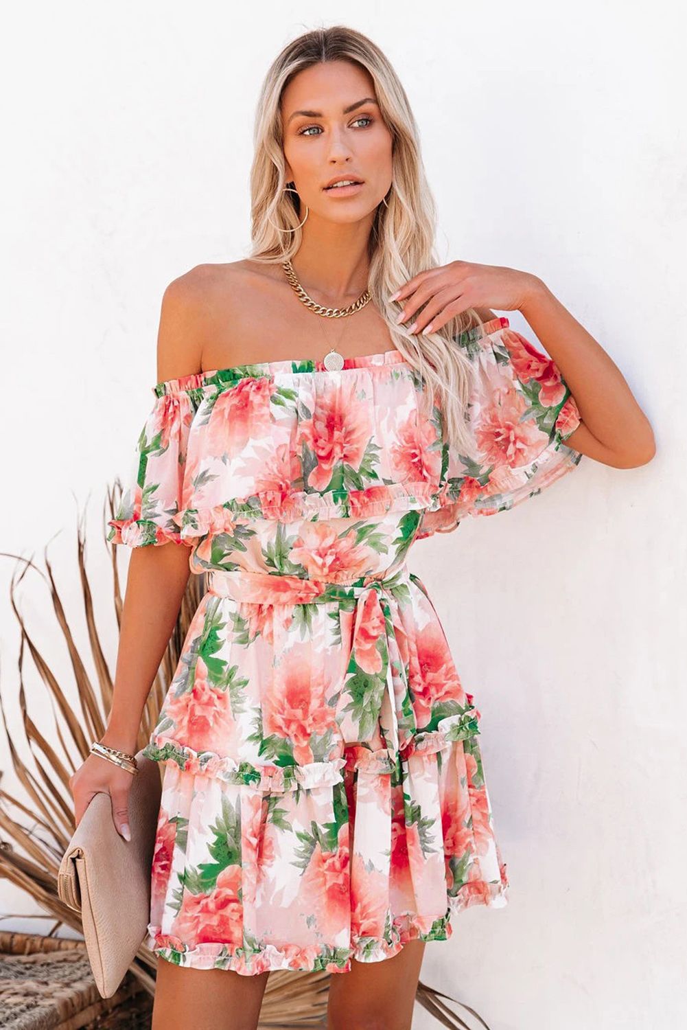 Off The Shoulder Ruffle Floral Dress