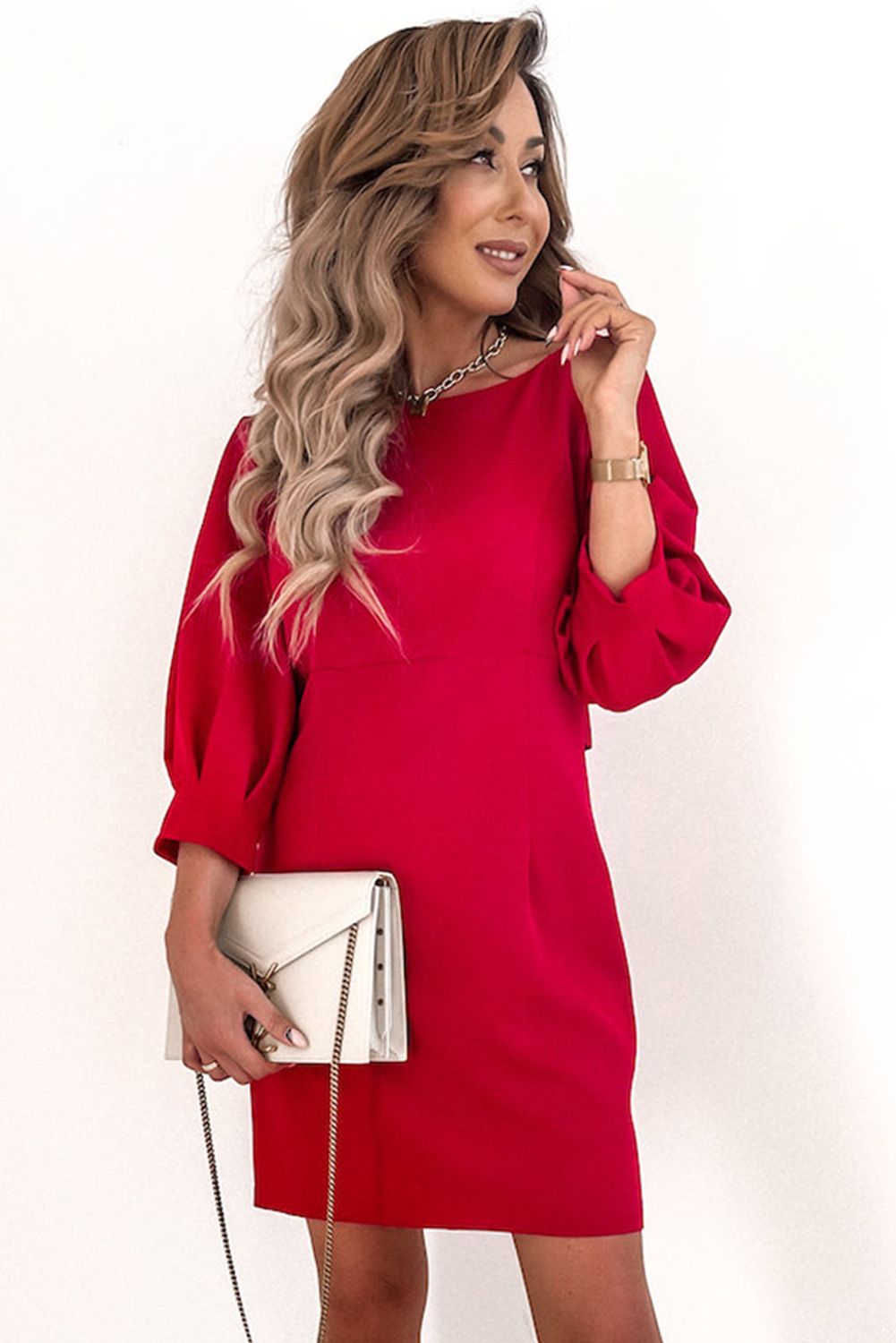 Low key boat neck design, puff sleeve and the v shape backless with bowknot is very sexy and eye-catching