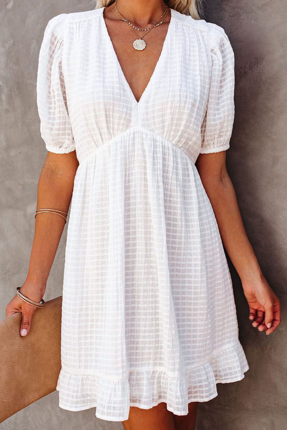 Black Checkered Pattern Puff Sleeve Babydoll Dress