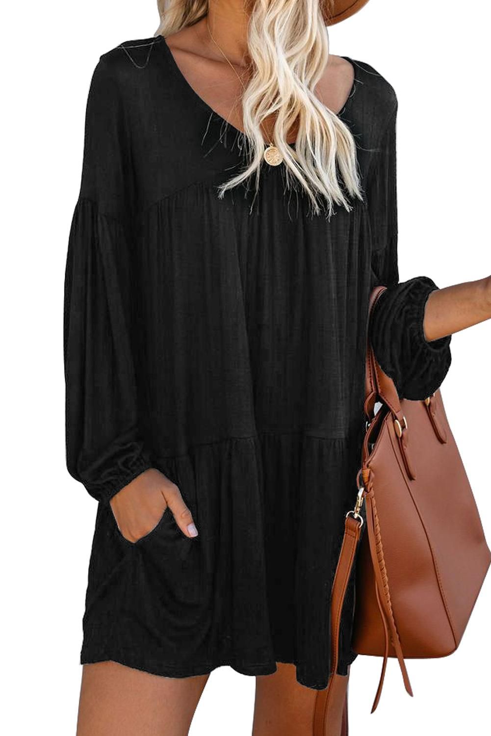 Black Wanderlust Pocketed Tiered Tunic Dress
