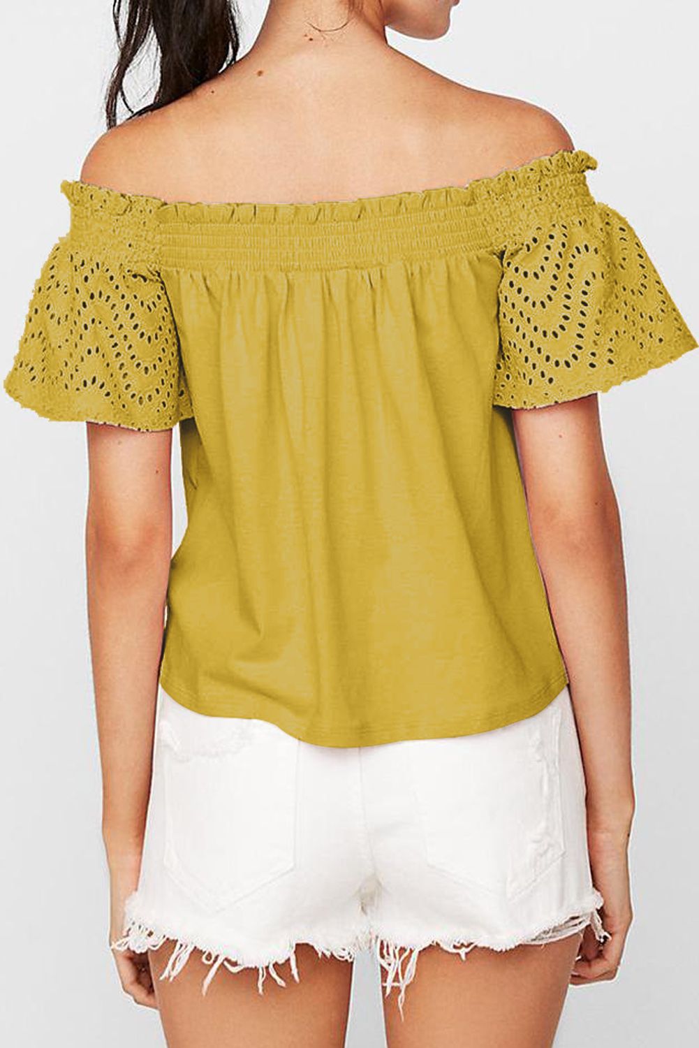 Pink Solid Shirring Off Shoulder Hollow out Top