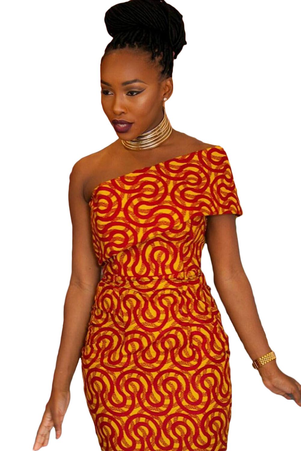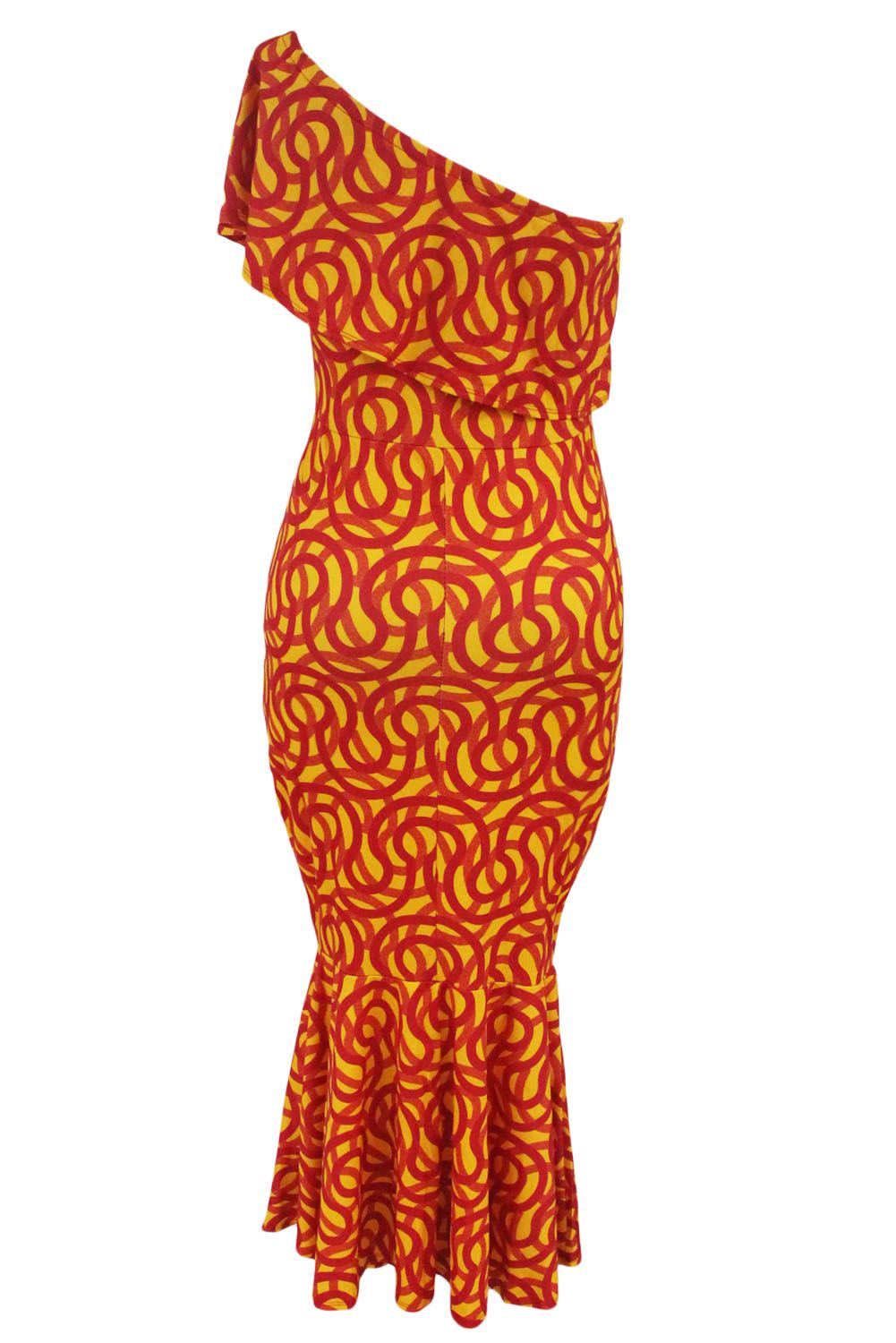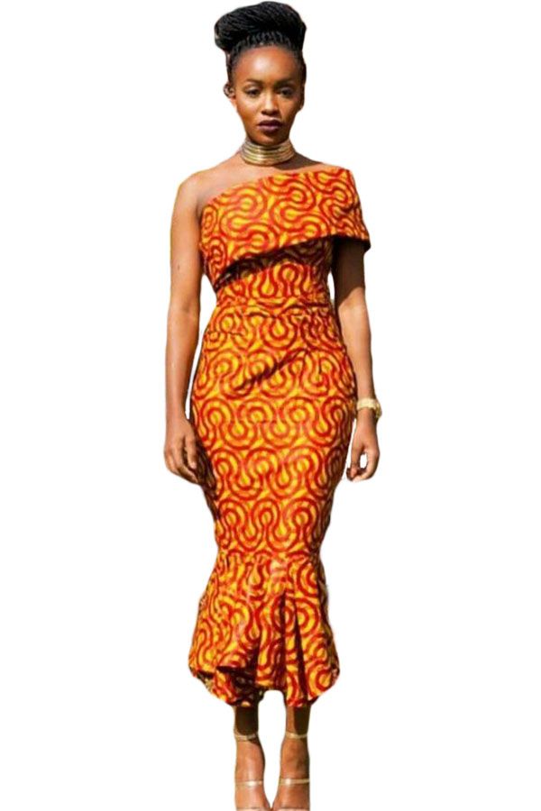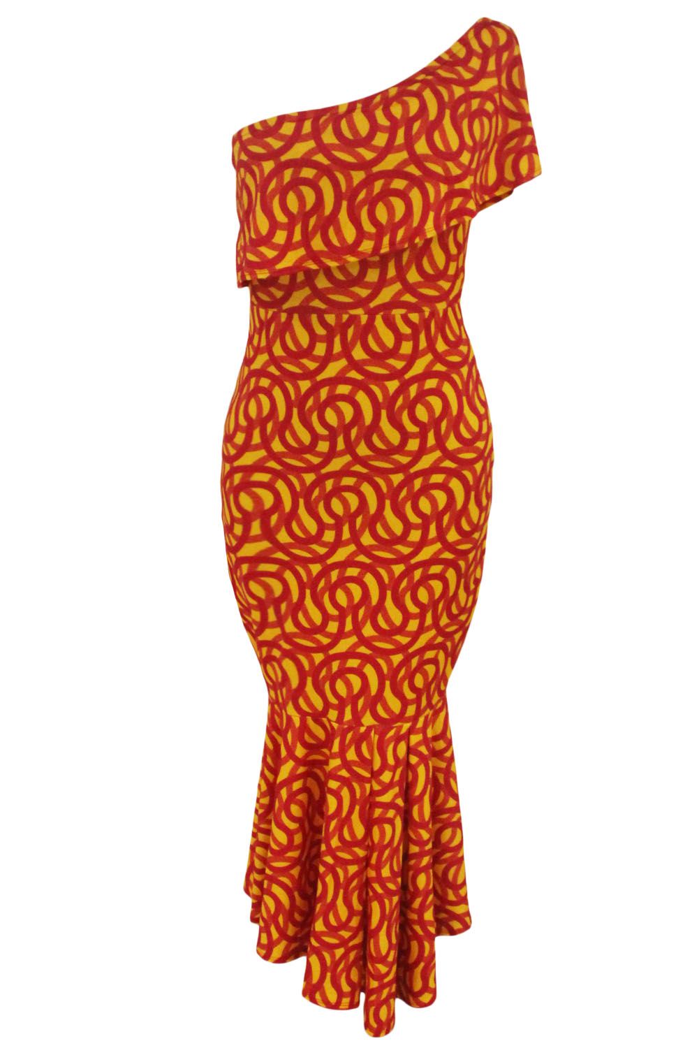 Heading to a ball? Got a date on the red carpet? Whether you wish to steal the show in a print dress or turn heads in a one-shoulder dress, look no further than Single Shoulder Mermaid Hem Africa Print Dress. Body-flattering print dress with mermaid hemline finished, pair this piece with fashion necklace and bangle to look more fascinating.