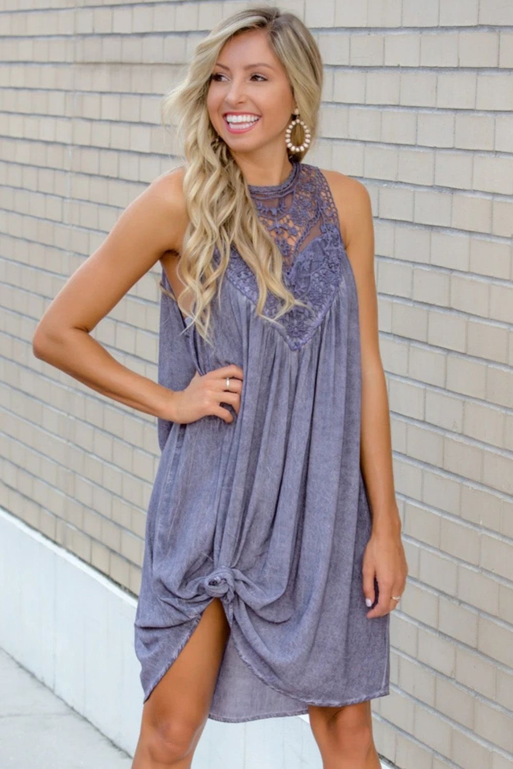 Violet Lace Neck Sleeveless Flowy Dress
